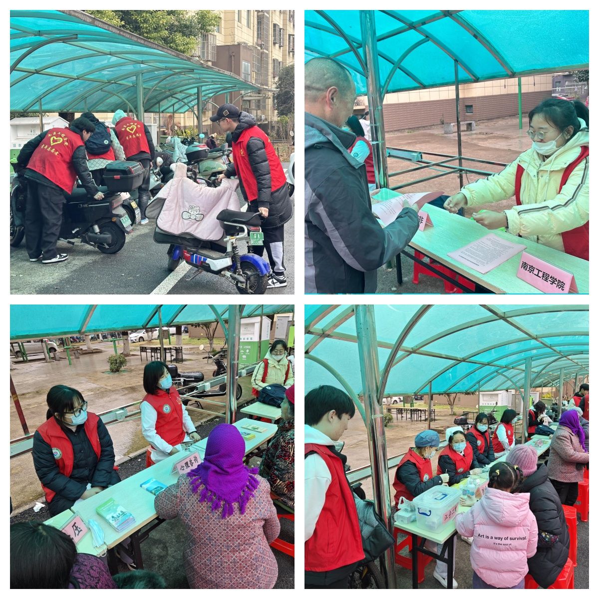 3月4日上午,机械工程学院学生志愿者团队前往东山街道天宁雅居小区,协助江宁区第二医院的医护人员开展爱心义诊志愿服务。