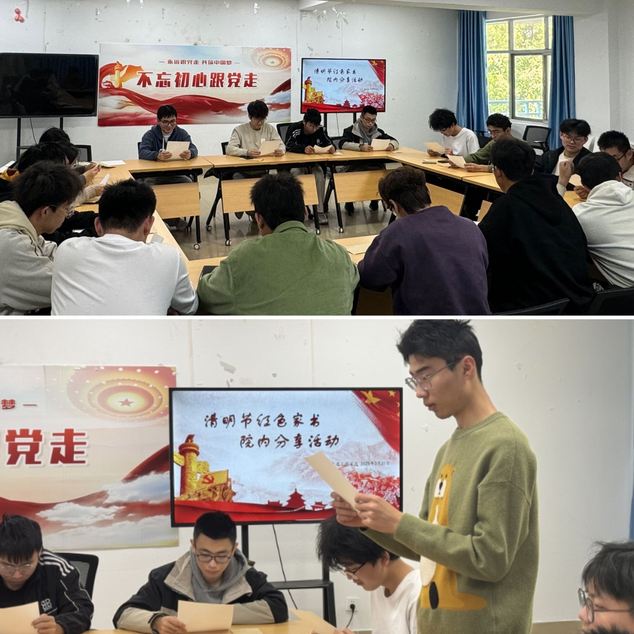 红色家书寄深情,遥忆先辈赤子心。学院组织开展了共读红色家书活动。同学们围坐在一起,共同诵读赵一曼、夏明翰等革命先烈的家书。“未惜头颅新故国,甘将热血沃中华”……一封封红色家书,纸短情长,字里行间流淌着革命先烈们对家人的深情眷恋,更饱含着他们对国家和民族的无限忠诚。“红色家书是革命先烈留给我们的宝贵精神财富,通过共读活动,更加坚定了自己的理想信念。”来自交控231班的殷渭清结合自身的学习和生活,畅谈自己的感悟和体会。