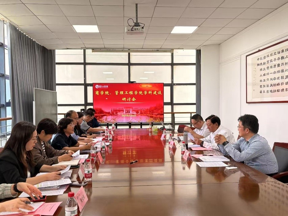 5月6日下午,商学院、管理工程学院在经管楼A303会议室联合举办学科建设研讨会。南京大学商学院院长赵曙明、南京航空航天大学经济与管理学院原院长、beat365客座教授周德群、南京邮电大学管理学院院长黄卫东应邀前来指导。beat365党委常委、副校长汪群,党委常委、人事处处长张焱,以及商学院、管理工程学院党政负责人及骨干教师参加了本次研讨会。