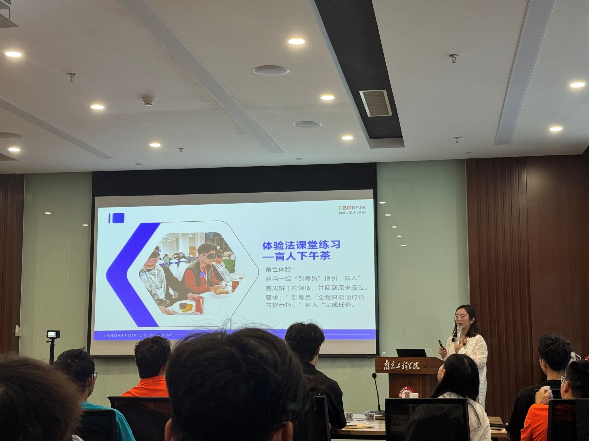 讲座伊始,授课老师以XbotPark体系为切入点,通过分享大疆、云鲸、霍曼等知名创业者背后的故事,生动展示了XbotPark体系在培育创新创业项目方面的卓越实力与显著成效,她指出,设计思维作为一种先进的思维方式和方法论,能够帮助学生更好地透过现象看本质,在日常生活中敏锐地发现问题、精准地定义问题,并找到创新创业的切入点。讲座过程中设置了丰富的互动环节,同学们积极参与互动,现场气氛热烈。