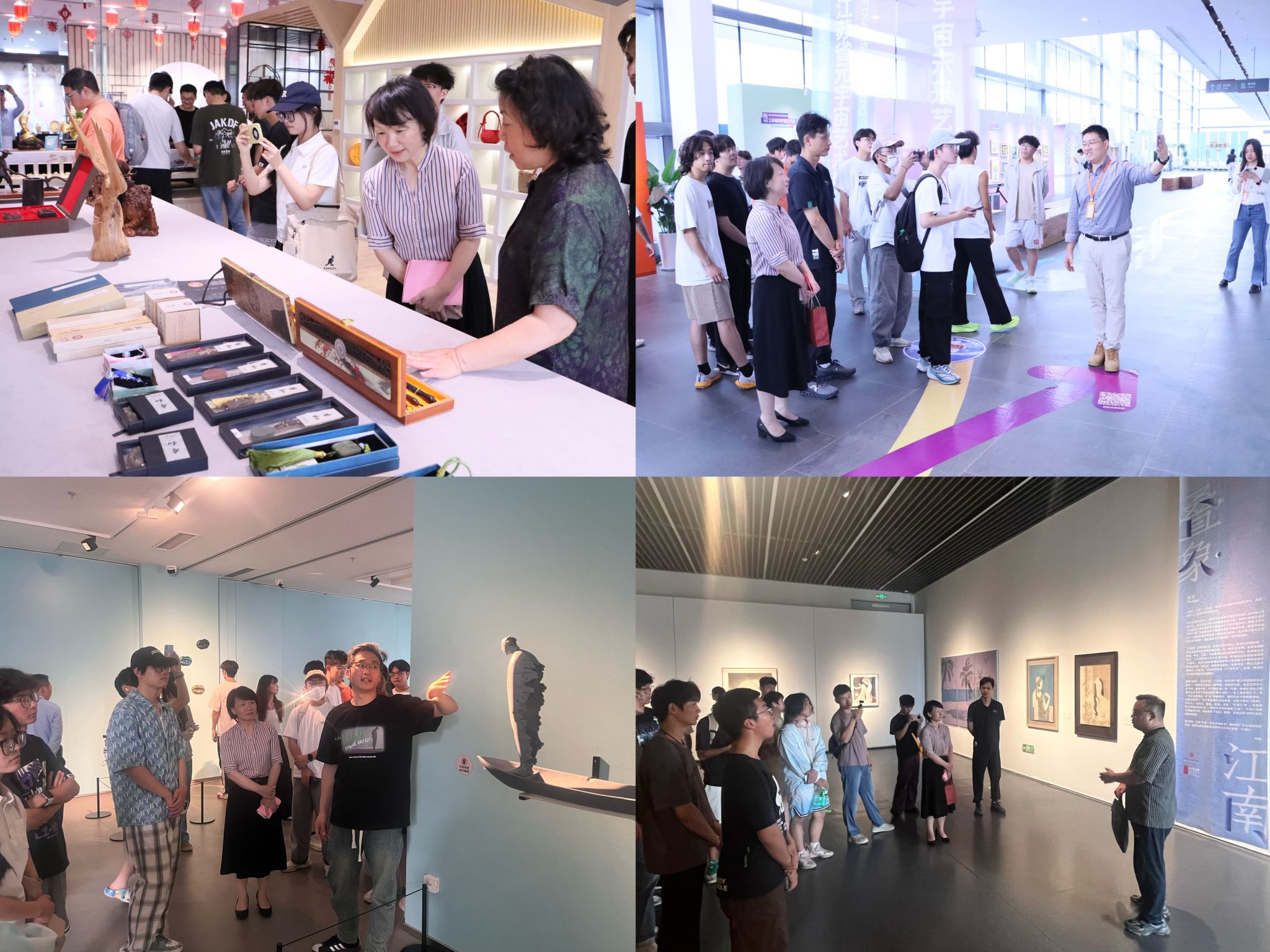 会前,师生们先后参观了非遗展厅、元宇宙AR艺术展、《百家凤鸣》馆藏作品展等展区,通过沉浸式体验引导师生体悟匠心精神与文化温度,深入思考艺术与生活、传统与创新的关系。此次共建是学院深化“大思政课”建设、拓展育人载体的创新实践,也是江宁美术馆发挥社会美育功能、服务高校人才培养的积极举措,双方将以基地为纽带持续深化合作,共谱校地协同育人新篇章。