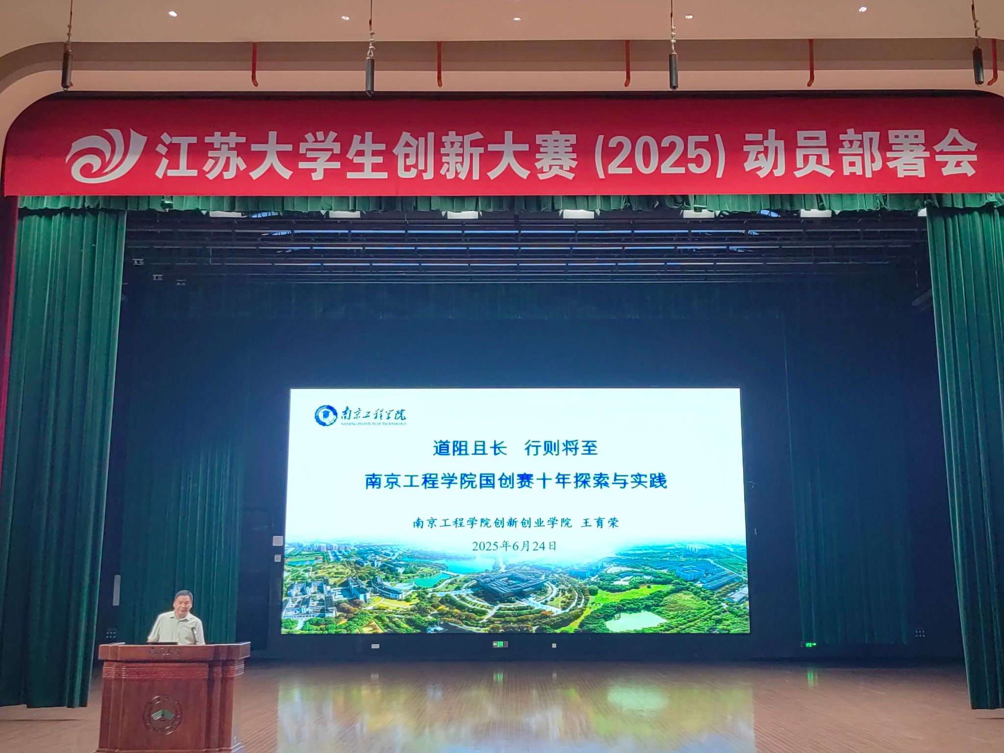 6月24日下午,江苏大学生创新大赛(2025)动员部署会在南通大学召开。省教育厅高教处负责同志、南通市相关领导、南通大学分管负责同志及各高校创新创业教育职能部门负责人、参赛师生代表参加会议。创新创业学院院长王育荣受邀出席并作交流报告。