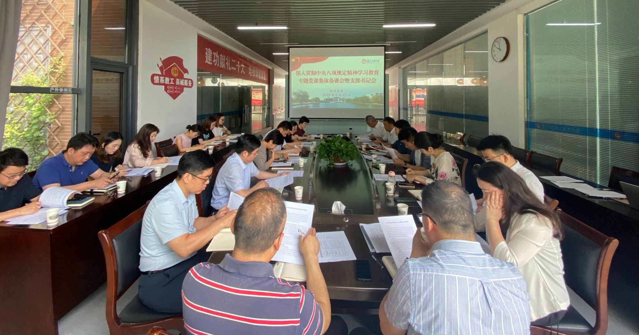 在节水节电文化节期间,机关党委结合深入贯彻中央八项规定精神学习教育,通过支部书记会议将《党政机关厉行节约反对浪费条例》的学习贯彻落实落细到各支部,党员干部先行,倡导厉行节约、反对浪费,把过紧日子作为一种习惯和常态的作风,积极营造绿色办公文化,为学校构建节约型校园、推动可持续发展奠定坚实基础。