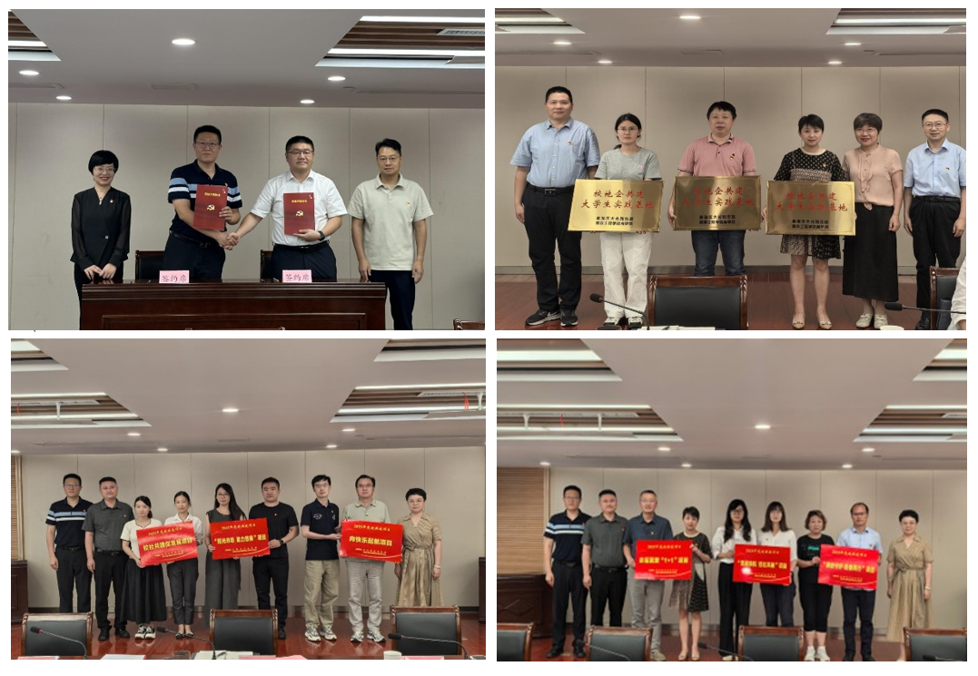 大光路街道办事处主任吴涛提出“历史文化与现代创新结合、高校智力与区域产业结合、人才培养与基层治理结合”的三方合作愿景。张文莉表示本次合作与学院“扎根地方、服务区域”的办学理念高度契合,将通过党建引领推动“校地企”三方资源要素的有机融合。活动现场,学院党委与大光路街道党工委签署党建共建协议,学院团委与街道团工委签订团建共建协议,形成“双轮驱动”的合作机制。区委宣传部为学院新时代文明实践青年志愿服务队授旗,蓝旗新村社区、柳树湾园区等单位获颁“校企地共建大学生实践基地”铭牌。