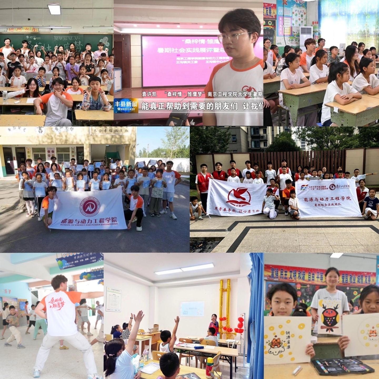 “桑梓情·雏鹰梦”志愿科普团队赓续十二载爱心接力,再次前往徐州丰县王沟镇中心小学,开展为期15天的支教活动,多元化课程覆盖科学启蒙、文化传承、安全防护等领域,获当地电视台专题报道,丰县教育局高度评价,“此类活动有力推动了城乡教育资源的互动共享,为乡村教育注入了新活力”;“ 心愿”支教团队则在南京市江宁区上坊社区开启了暑期托管服务,有效丰富了社区儿童的假期生活,被社区居民称为“暑期暖心工程”。
