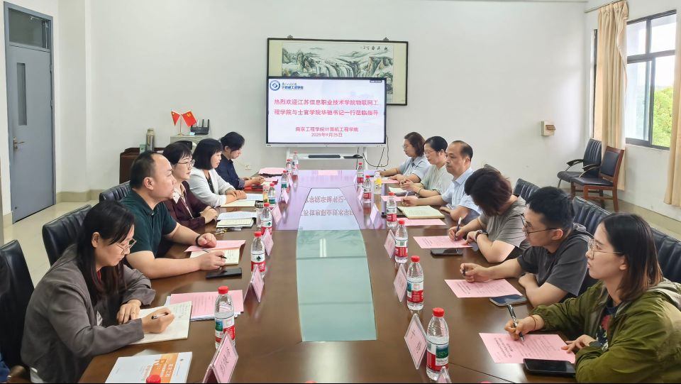 9月25日,江苏信息职业技术学院(以下简称“江苏信院”)物联网工程学院与士官学院党总支书记、物联网工程学院副院长华驰一行到访计算机工程学院开展调研交流。学院党委书记王晓红,党委副书记、院长黄纬等教师代表参加。