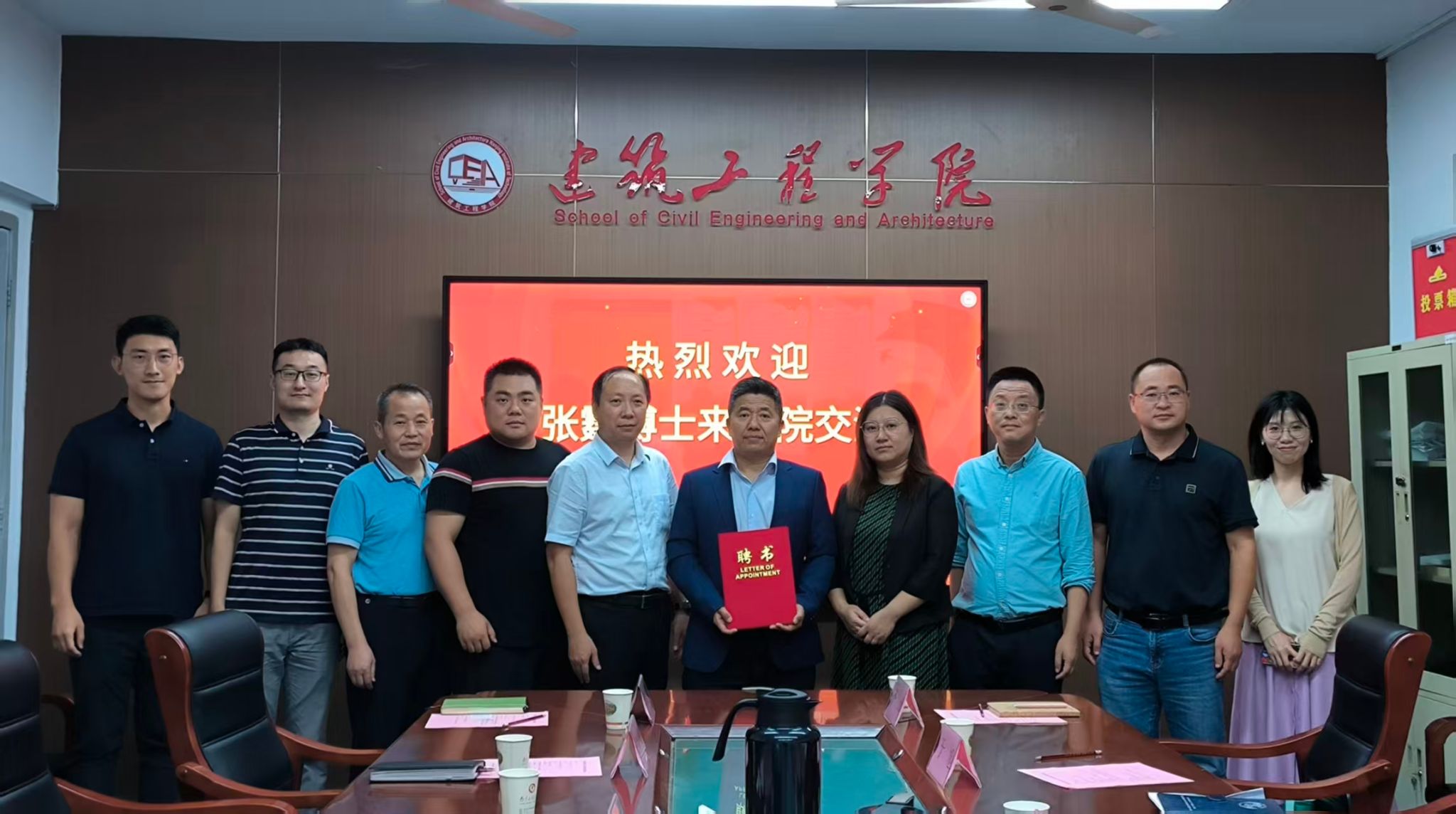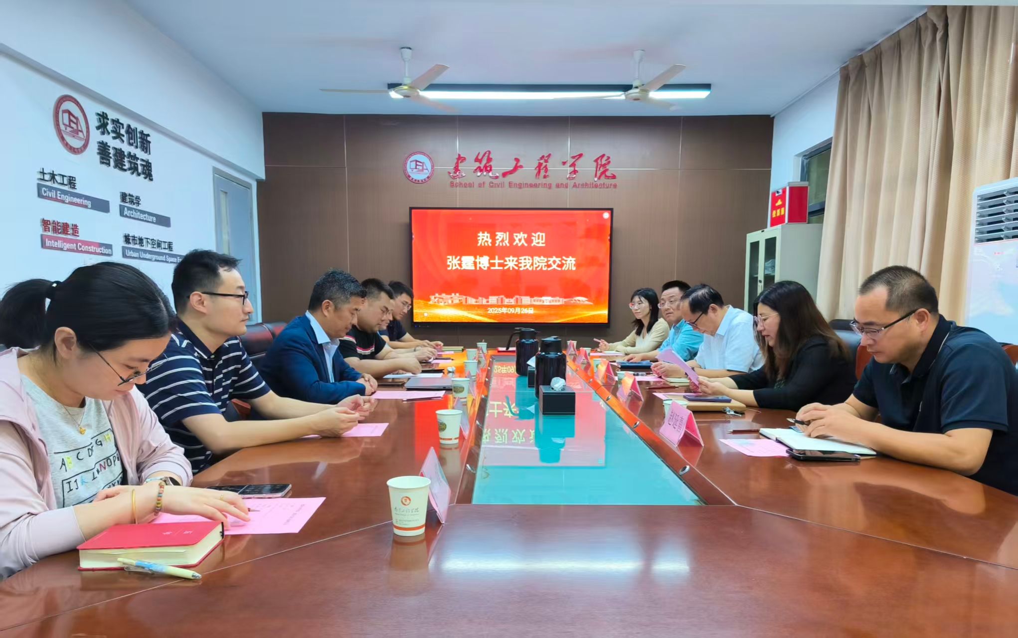 为深化国际学术交流,拓展师生全球视野,赋能学院事业高质量发展,9月26日下午,建筑工程学院特邀西澳华人工程师协会会长、澳大利亚AAD POWER董事总经理张霆来校访问交流,学院领导班子、国际合作与交流处相关负责人、校友孙浚博博士及部分教师代表参加活动。