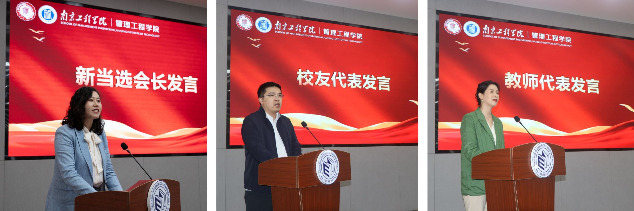 在发言环节,新任会长徐娟郑重表态,将致力于把校友会建设成温暖的“校友之家”、联结共赢的“发展之桥”、发扬文化的“精神之旗”。信管061班校友、上海市劳动模范、中国电信上海公司解决方案中心方案总监宋佳琪深情回顾校园时光,呼吁全体校友携手共创未来。教师代表熊向阳分享了见证学子成长的珍贵记忆,期望学院校友成为连接广大校友的重要纽带。