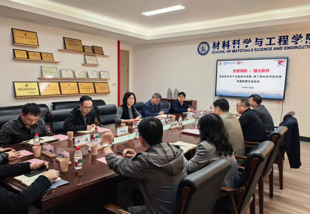 11月3日下午,高邮市委常委、政法委书记王怀忠率市科技局、相关区镇及企业代表一行来访材料科学与工程学院,共同开展“党建领航,链出新材”合作交流推进会。学院党委领导班子、教工党支部书记和专业教师代表共同参会,共话链上协同,共谋融合发展。