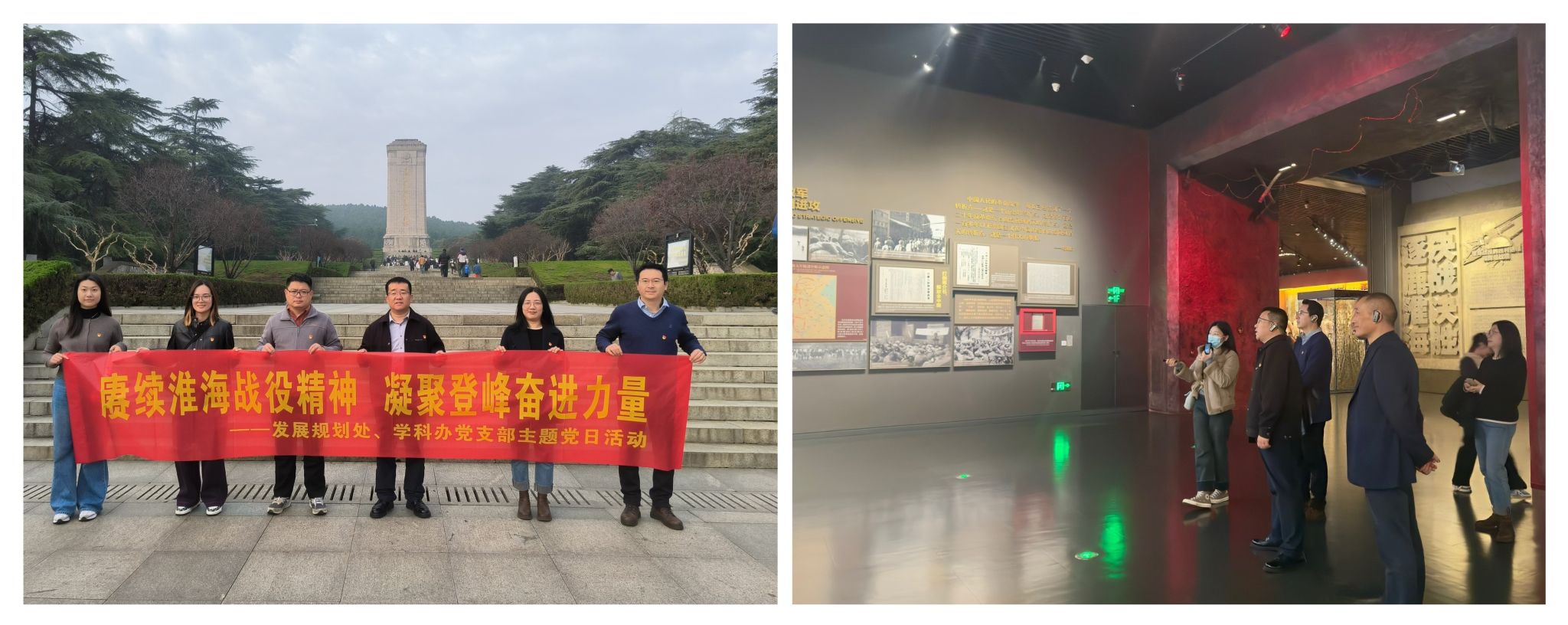 活动中,党支部还赴淮海战役纪念馆参观学习。全体党员通过瞻仰淮海战役烈士纪念塔、默读烈士英名、听取战役故事等形式,学习淮海战役的光辉历史,深刻领会“听党指挥、依靠人民、团结协同、决战决胜”的革命精神实质。大家纷纷表示,要切实将淮海战役彰显的政治品格和团结精神转化为实际行动,坚持实事求是、砥砺奋进、攻坚克难的工作作风,以高度负责的态度推进“十五五”规划编制工作,以务实举措为学校事业高质量发展作出应有贡献。